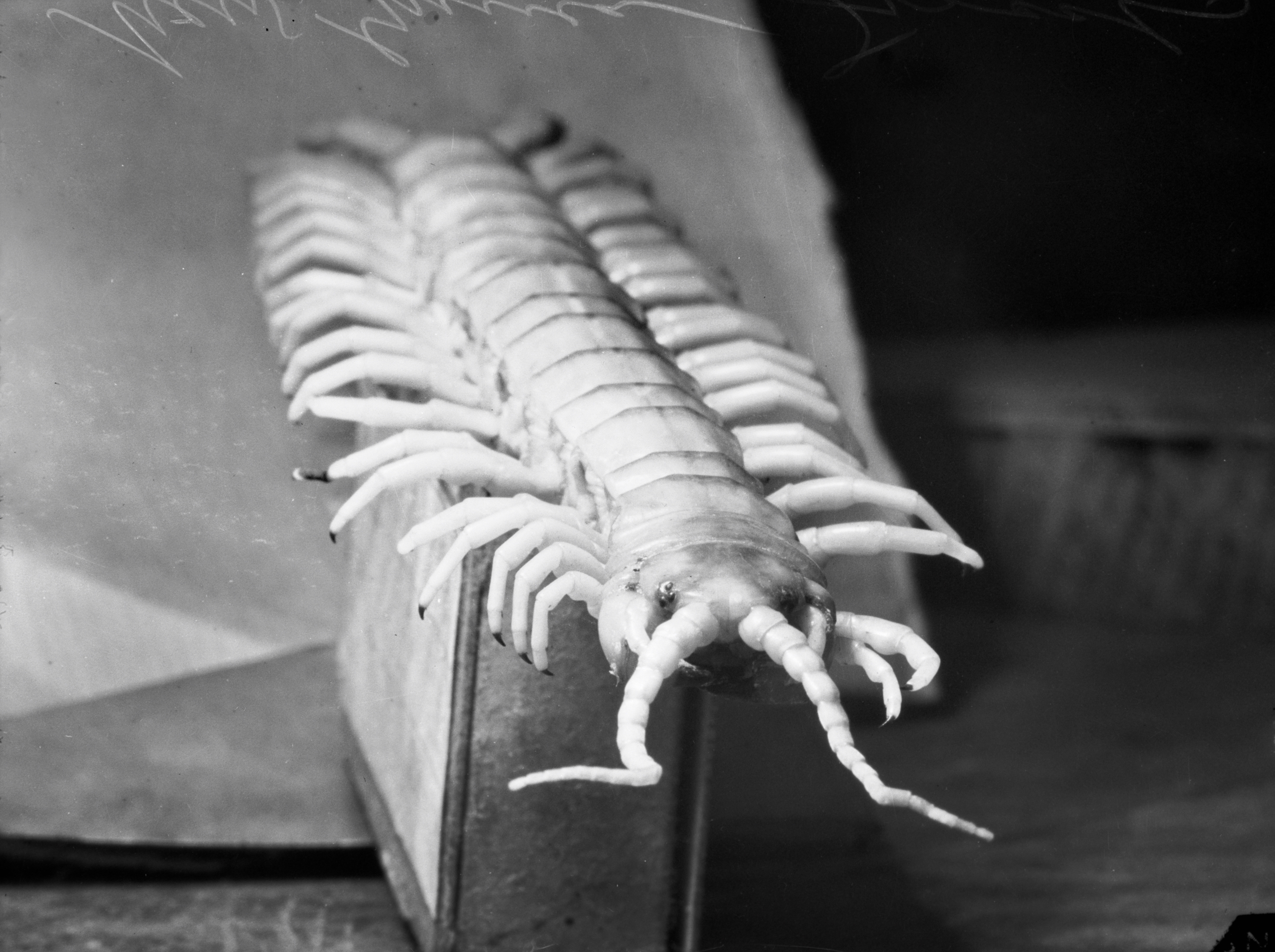 A 42 legged centipede, one of the many insect pests with which Australian servicemen have to contend with serving in New Guinea. 1943-12-30.