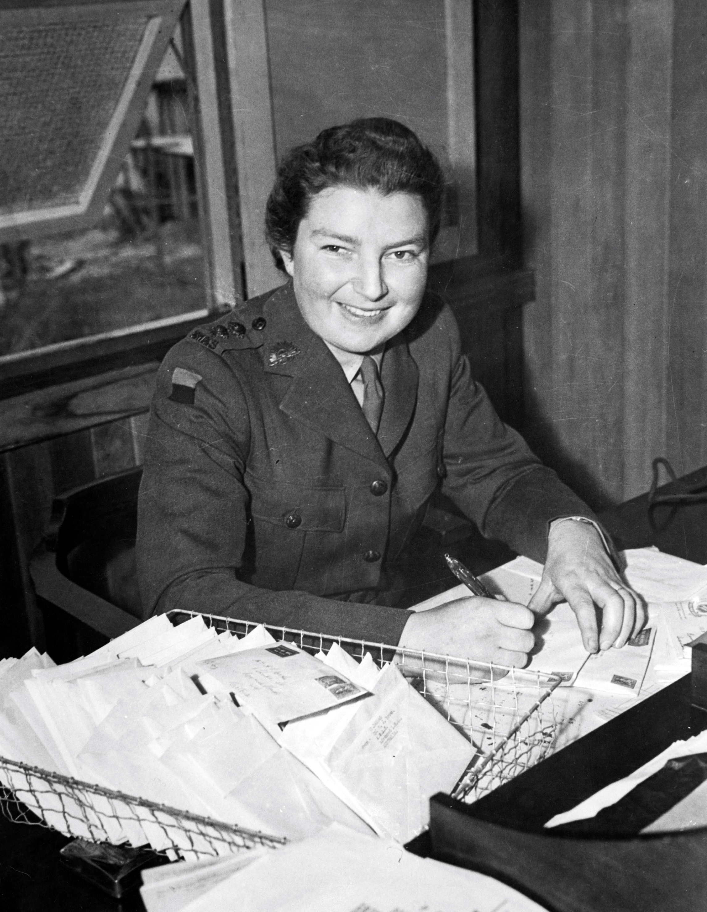 Lieutenant Thelma Long, Australian Women’s Army Service, censoring mail, Brisbane, October 1942. Photographer unknown.