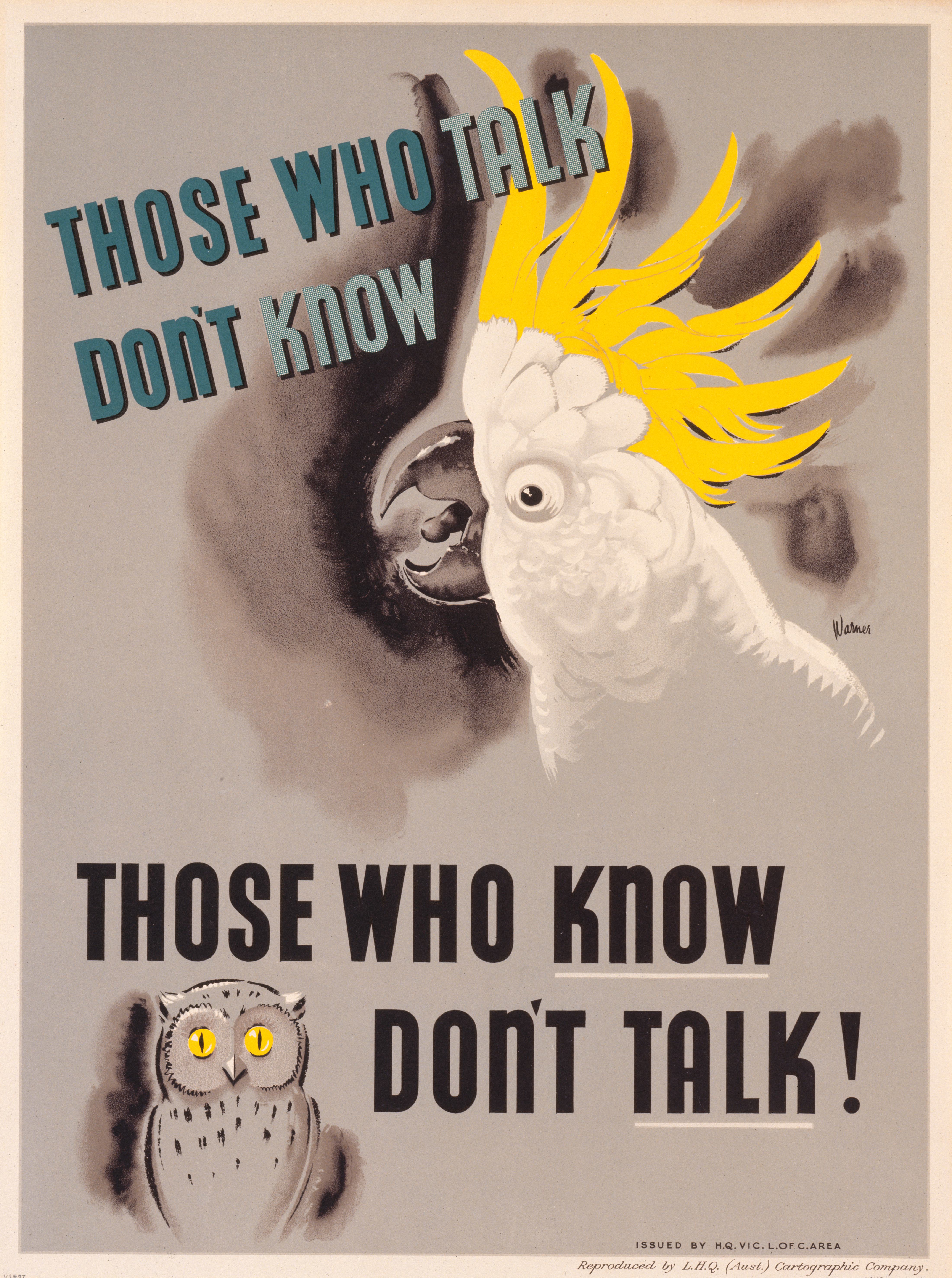 R. Malcolm Warner, Those Who Talk Don’t Know (1943, lithograph, 51 x 38 cm).