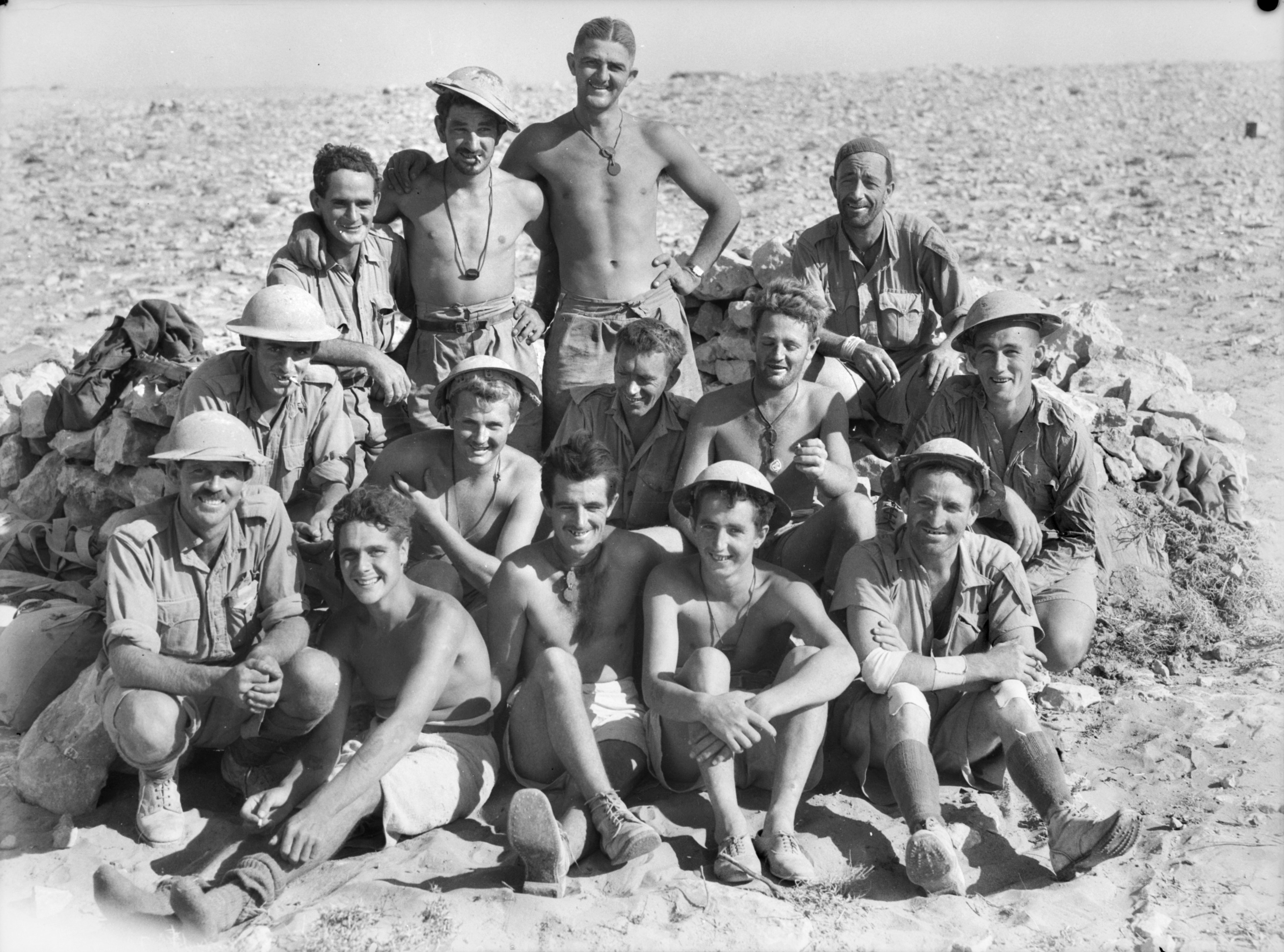 The tank chaser platoon of the 2/10th Battalion prior to leaving Tobruk. Privates VX36671 Gordon James Watkins and VX35964 William John Goodgame are amongst the group. Photographer: George Silk