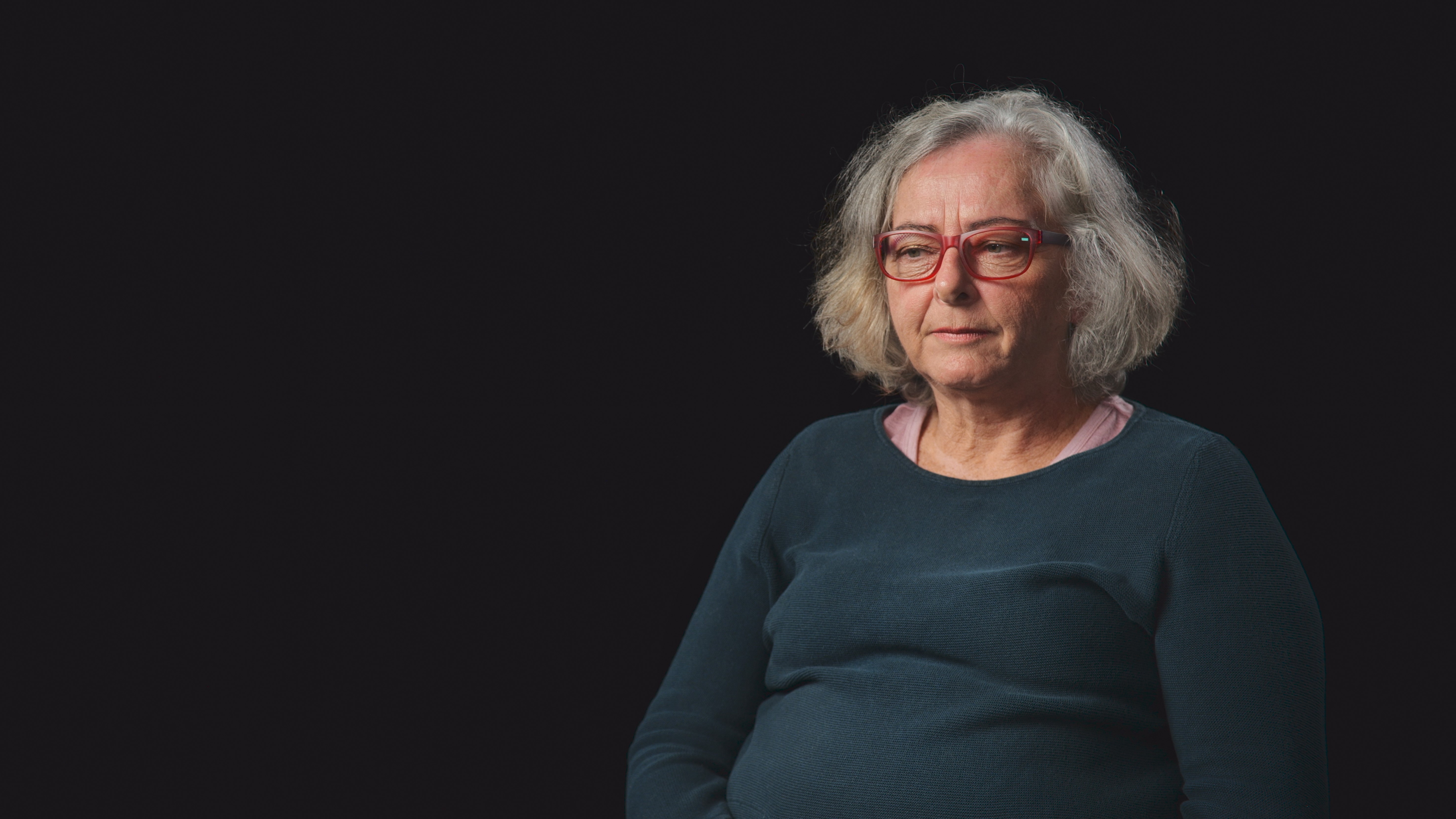 Virginia ‘Ginny’ Stein being interviewed for the Australian War Memorial exhibition Action! Film and War. Produced by Aquilo Productions. AWM2022.1134.13 [film still]