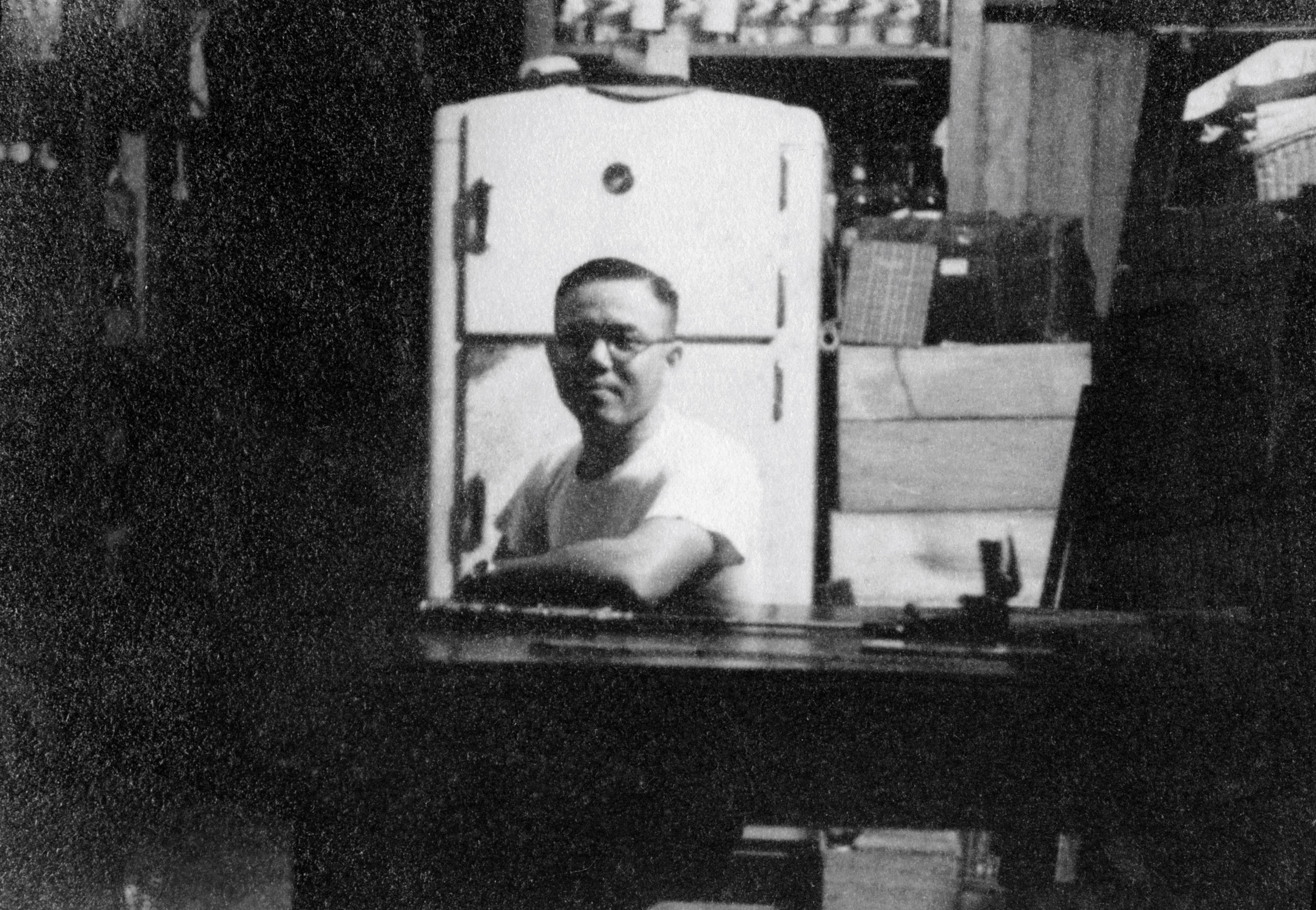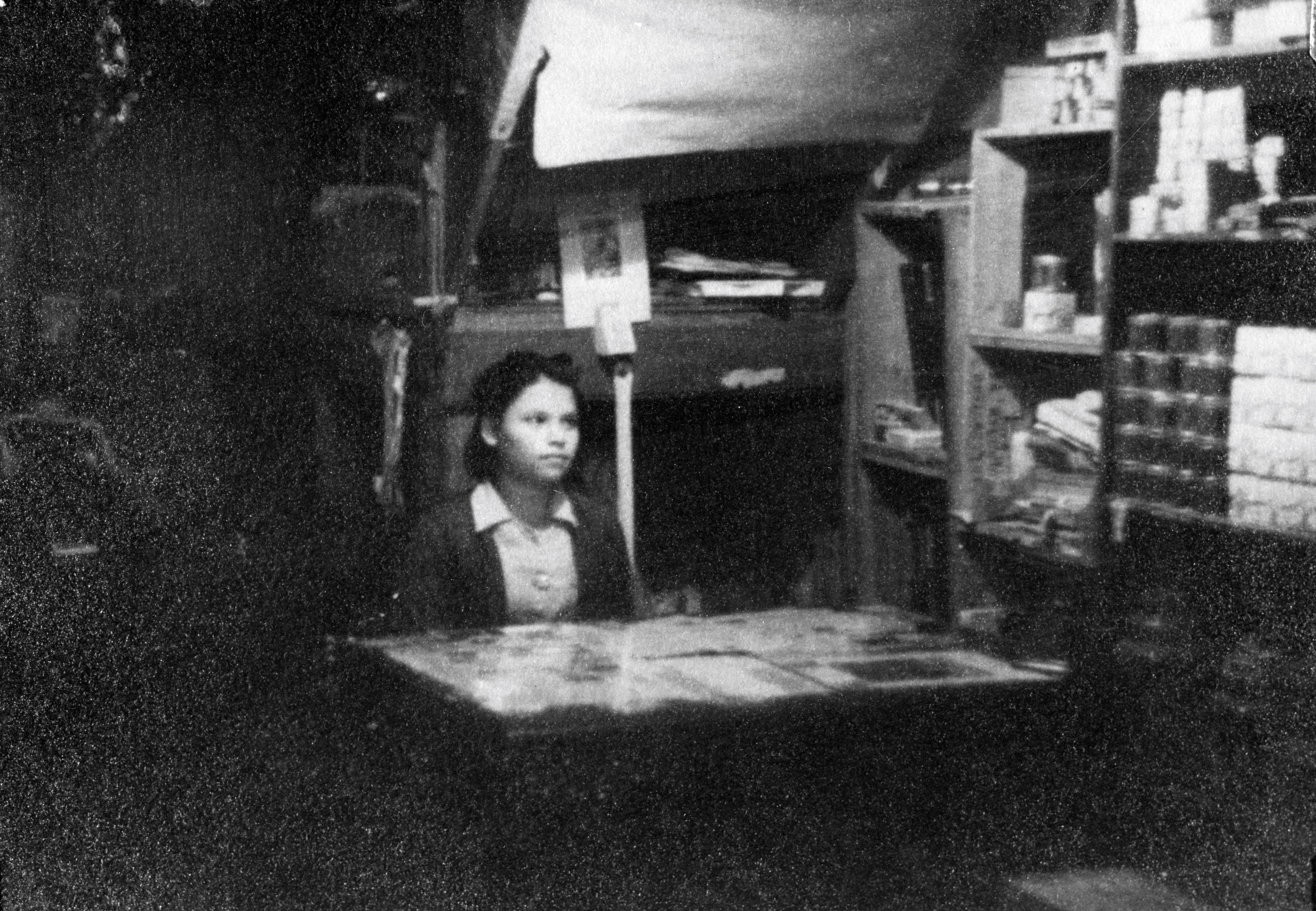 Boonpong Sirivejjabhandu in his General Store on Parkprag Road, which he still ran while aiding prisoners, 1943.