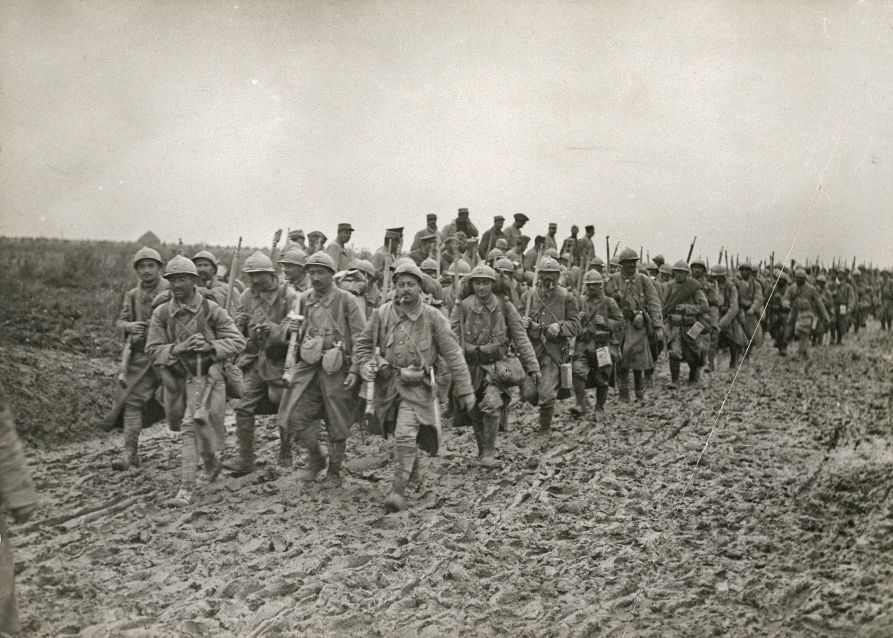 The fight was being taken up all along the line – here the French return from an operation near Etinehem. 04504